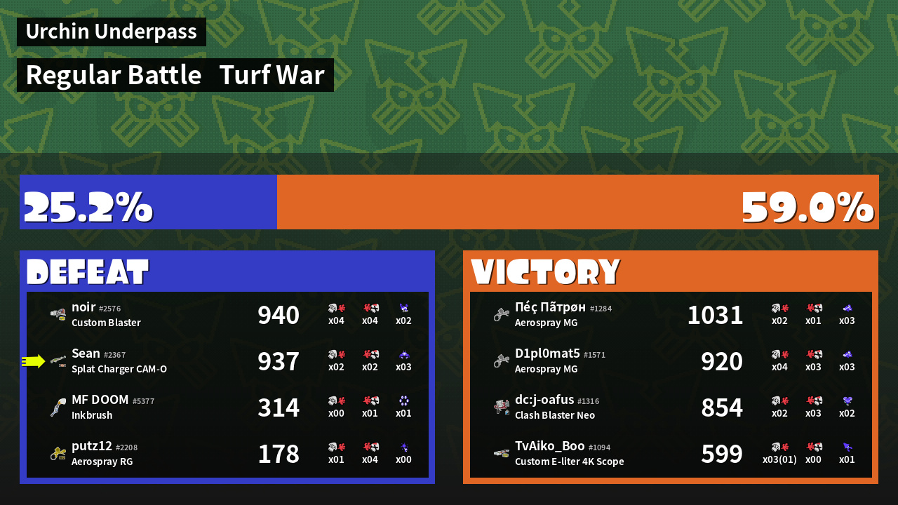 | Mode | Turf War - Regular Battle | ||
