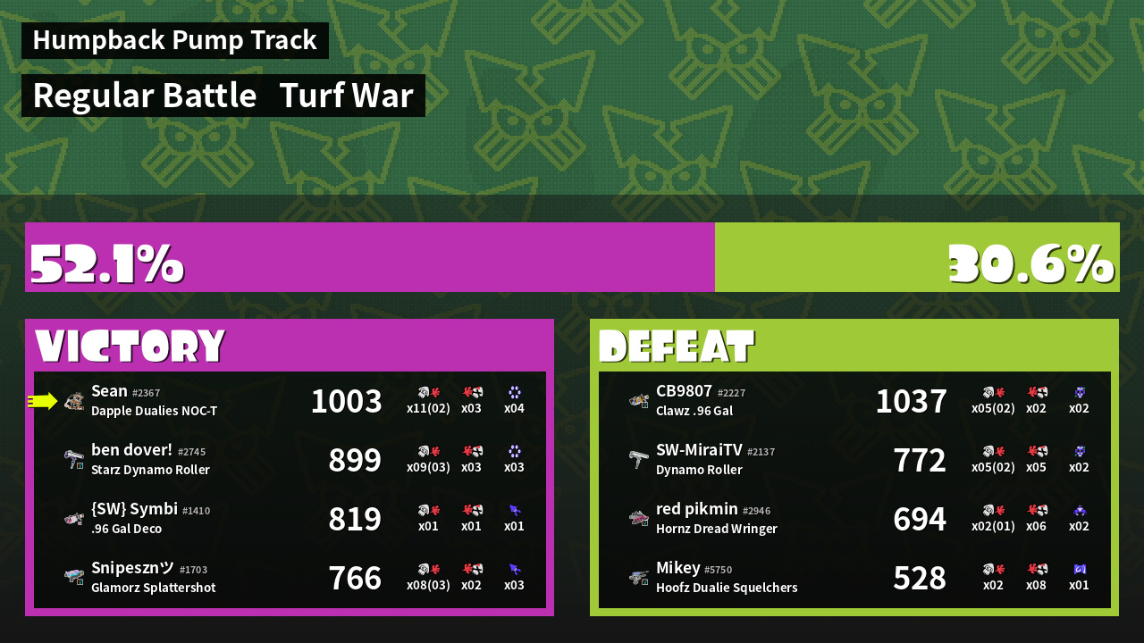 | Medals | #1 Overall Splatter #1 Turf Inker #1 Enemy Splatter | ||