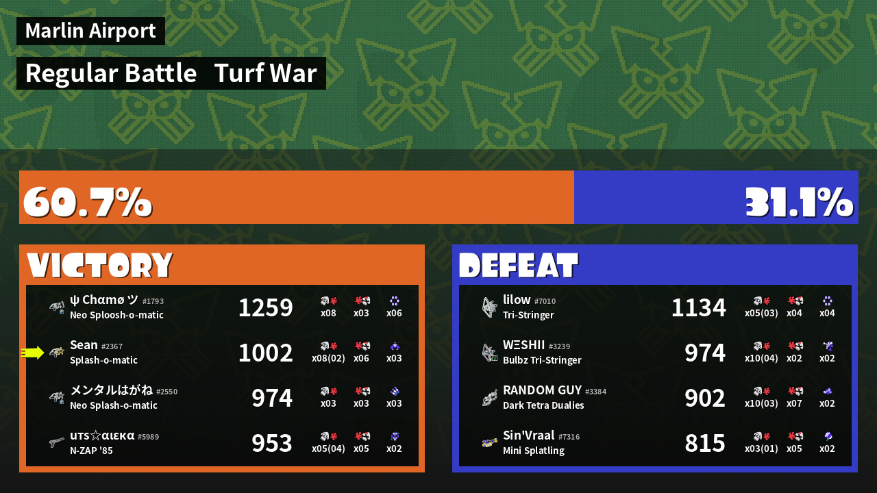 | Mode | Turf War - Regular Battle | ||