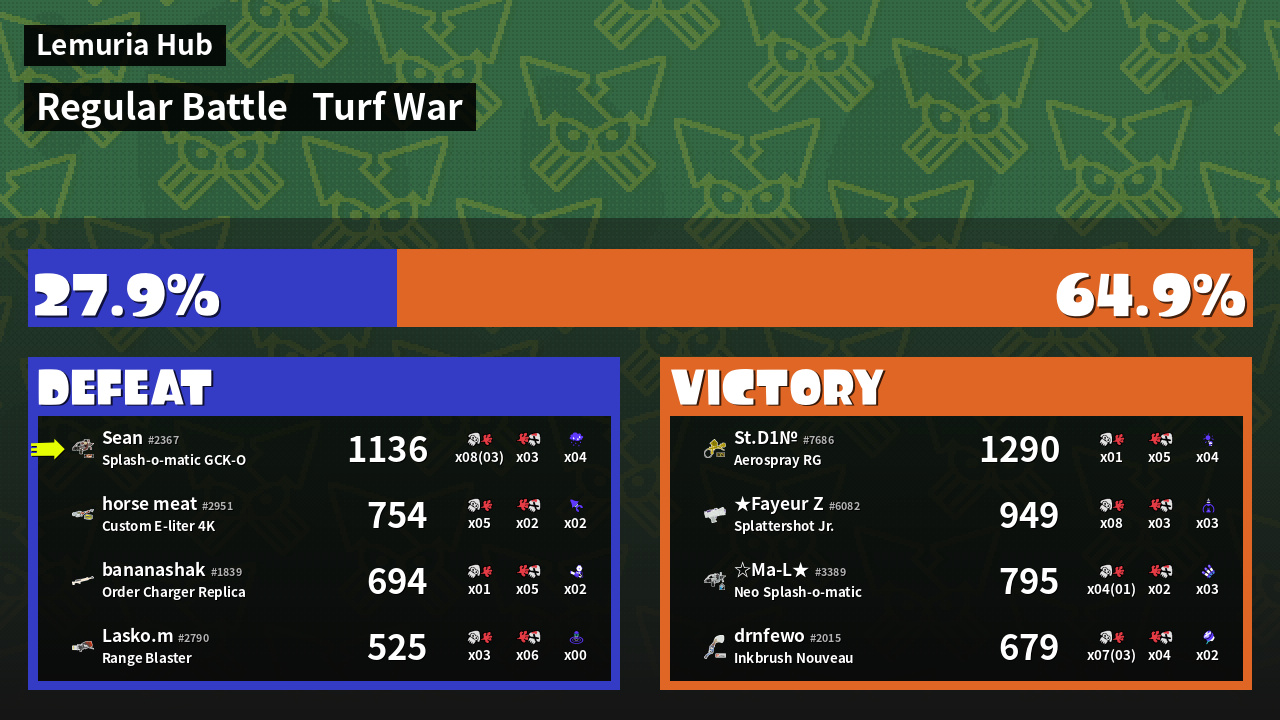 | Mode | Turf War - Regular Battle | ||