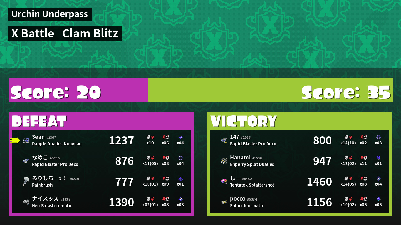 | Medals | #1 Score Booster #1 Clam Carrier #1 Enemy Splatter | ||