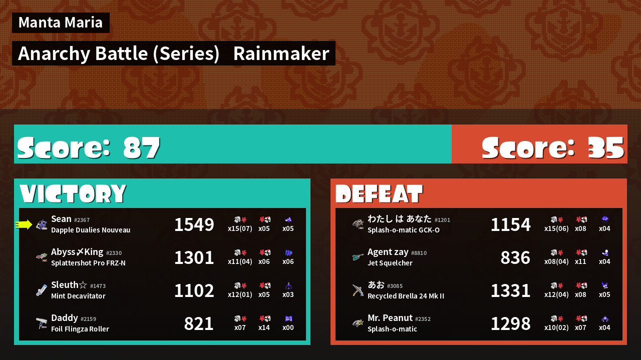 Kills / Deaths | 8 + 7 / 5 > Kill Ratio: 1.60 | ||
