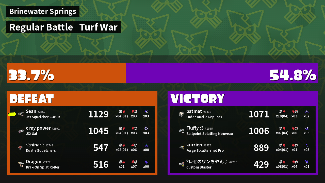 | Mode | Turf War - Regular Battle | ||