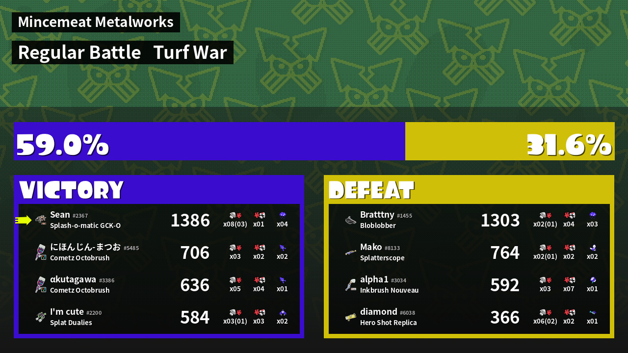 | Mode | Turf War - Regular Battle | ||