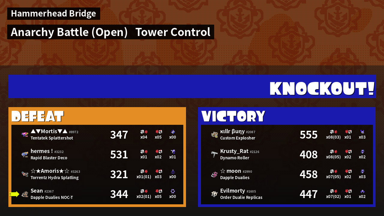 | Medals | #1 Splat Assister #1 Tower Stopper #1 Ground Traveler | ||