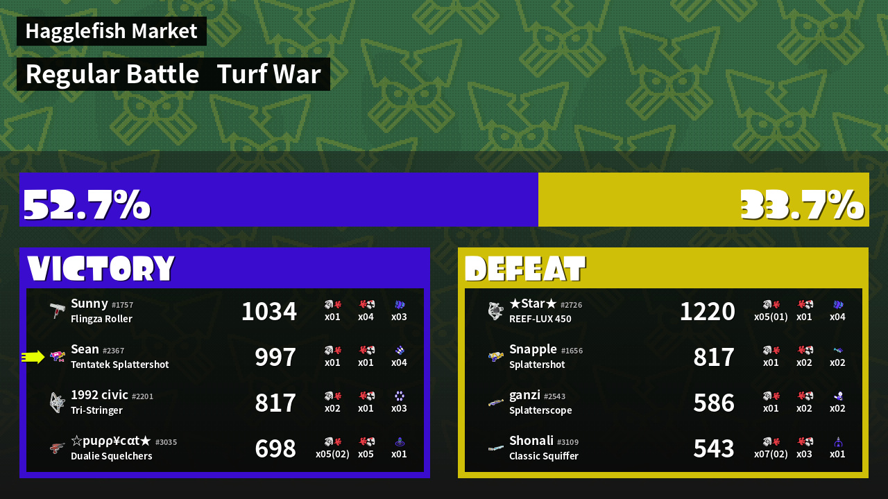 | Mode | Turf War - Regular Battle | ||