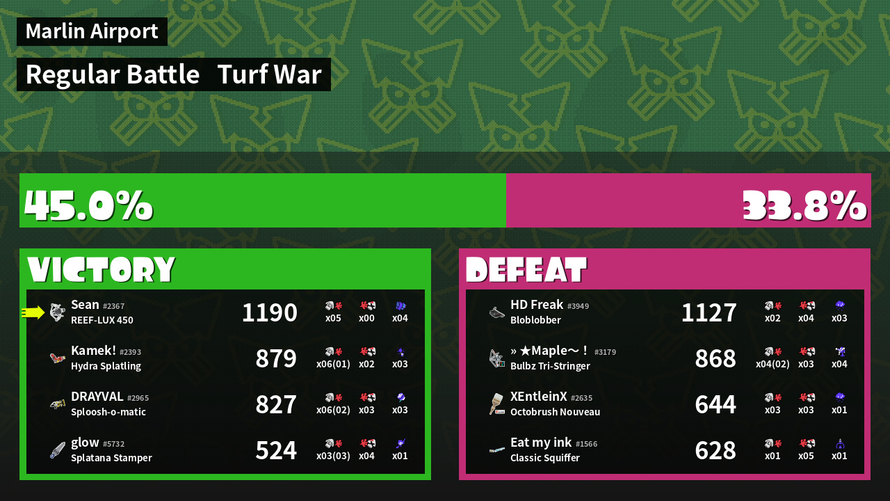 | Mode | Turf War - Regular Battle | ||