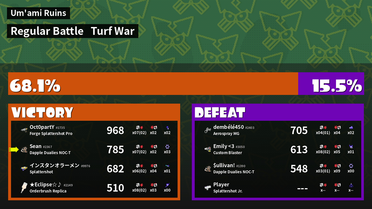 | Weapon | Dapple Dualies NOC-T ( Splat Bomb / Killer Wail 5.1) | ||