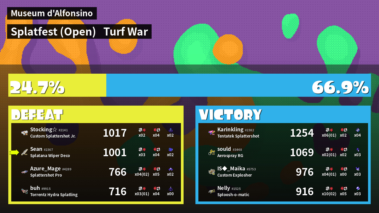 | Medals | #1 Enemy-Base Inker #1 Enemy Splatter #1 Ground Traveler | ||