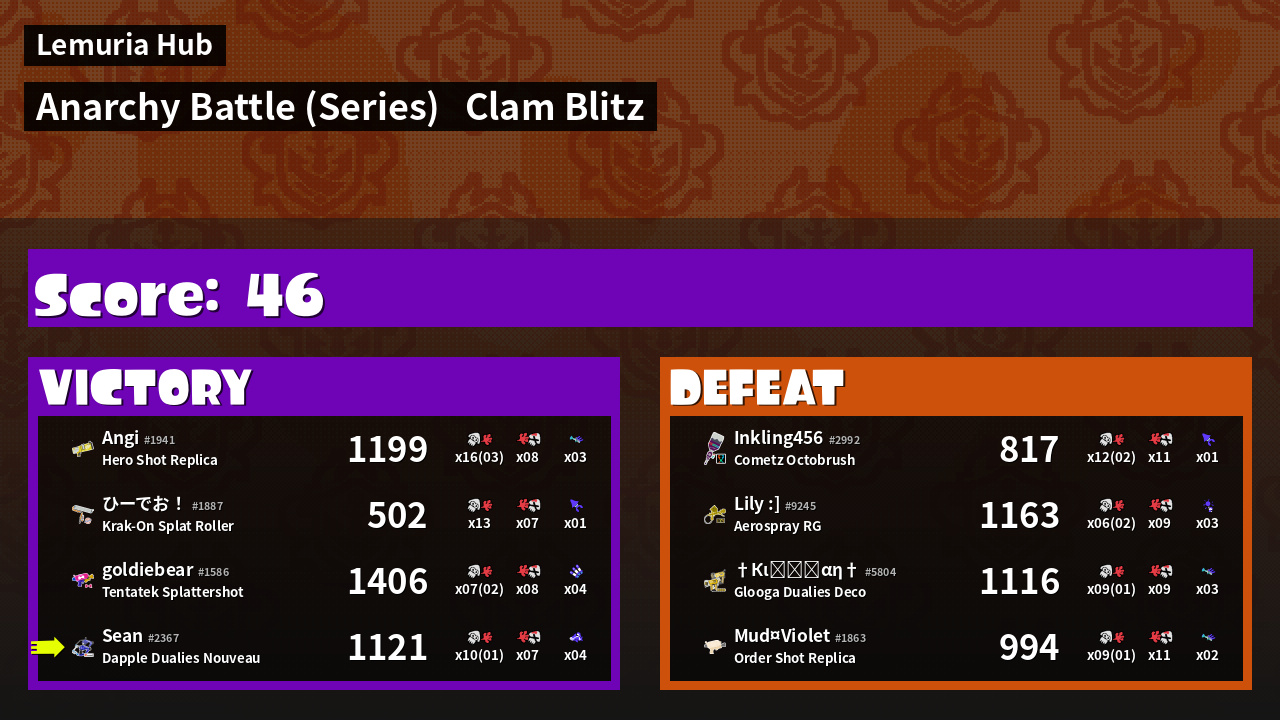 | Mode | Clam Blitz - Anarchy Battle (Series) | ||