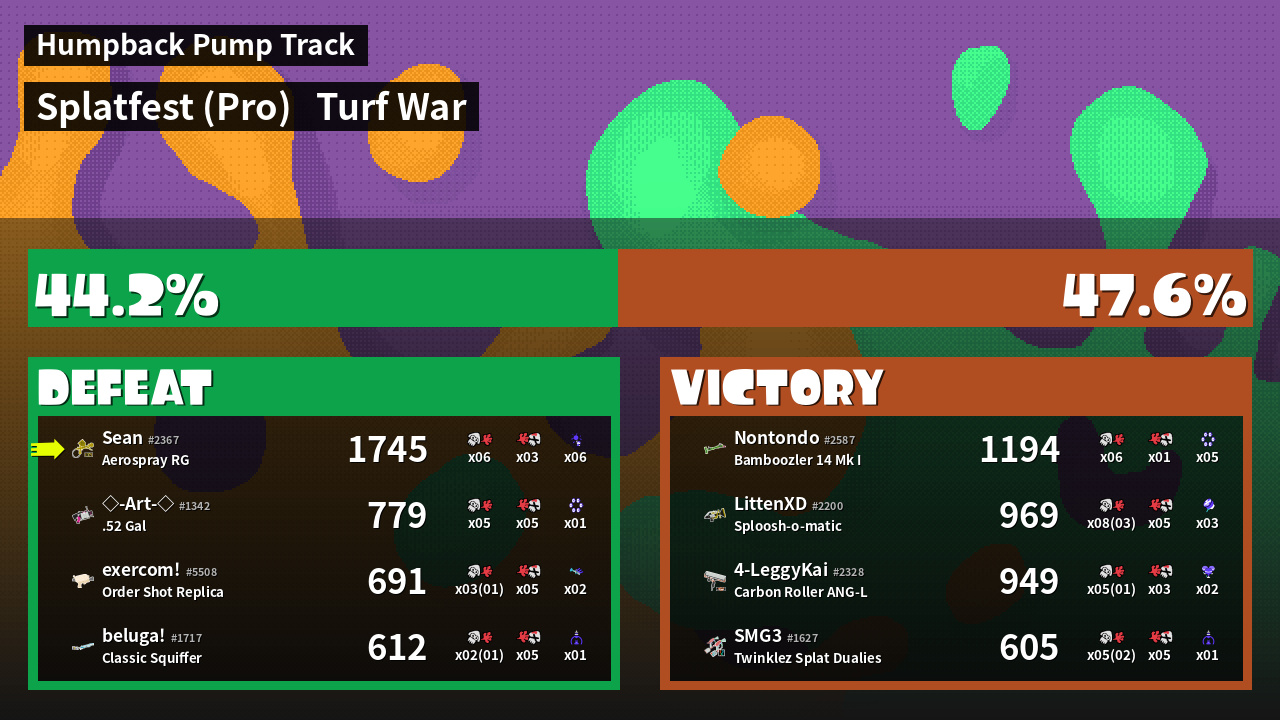 | Mode | Turf War - Splatfest (Pro) | ||