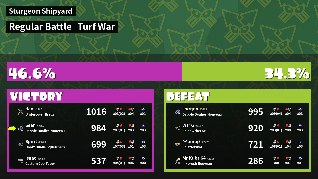 | Medals | #1 Overall Splatter #1 Super Jump Spot #1 Enemy Splatter | ||