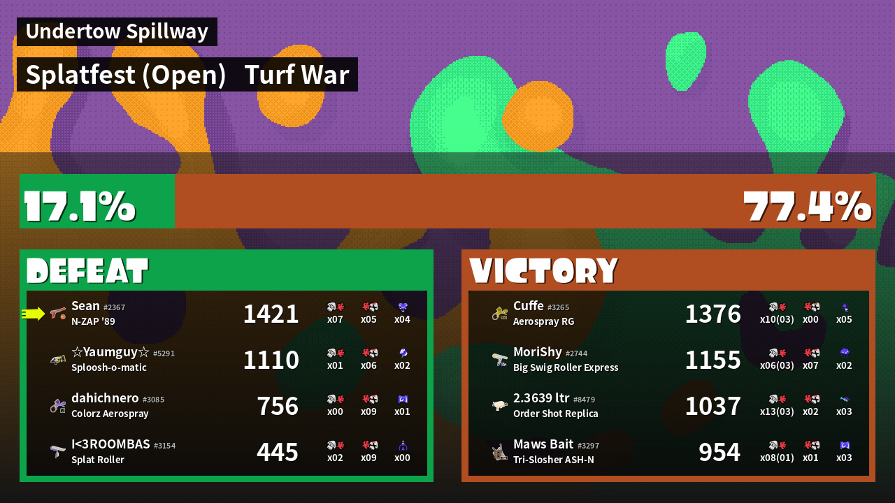| Blustery Youth  I<3ROOMBAS #3154 |  Splat Roller                    | 445 | 2 + 0 | 9 | 0.22 |  0 | |