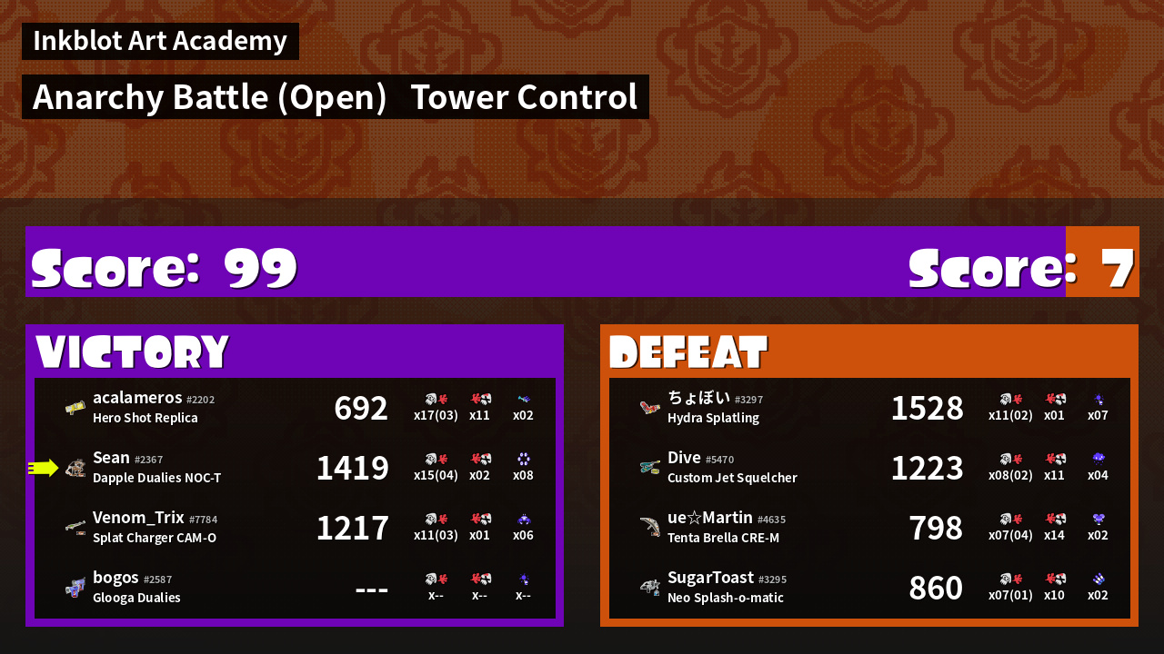 Name | Weapon | Inked | ![]() |