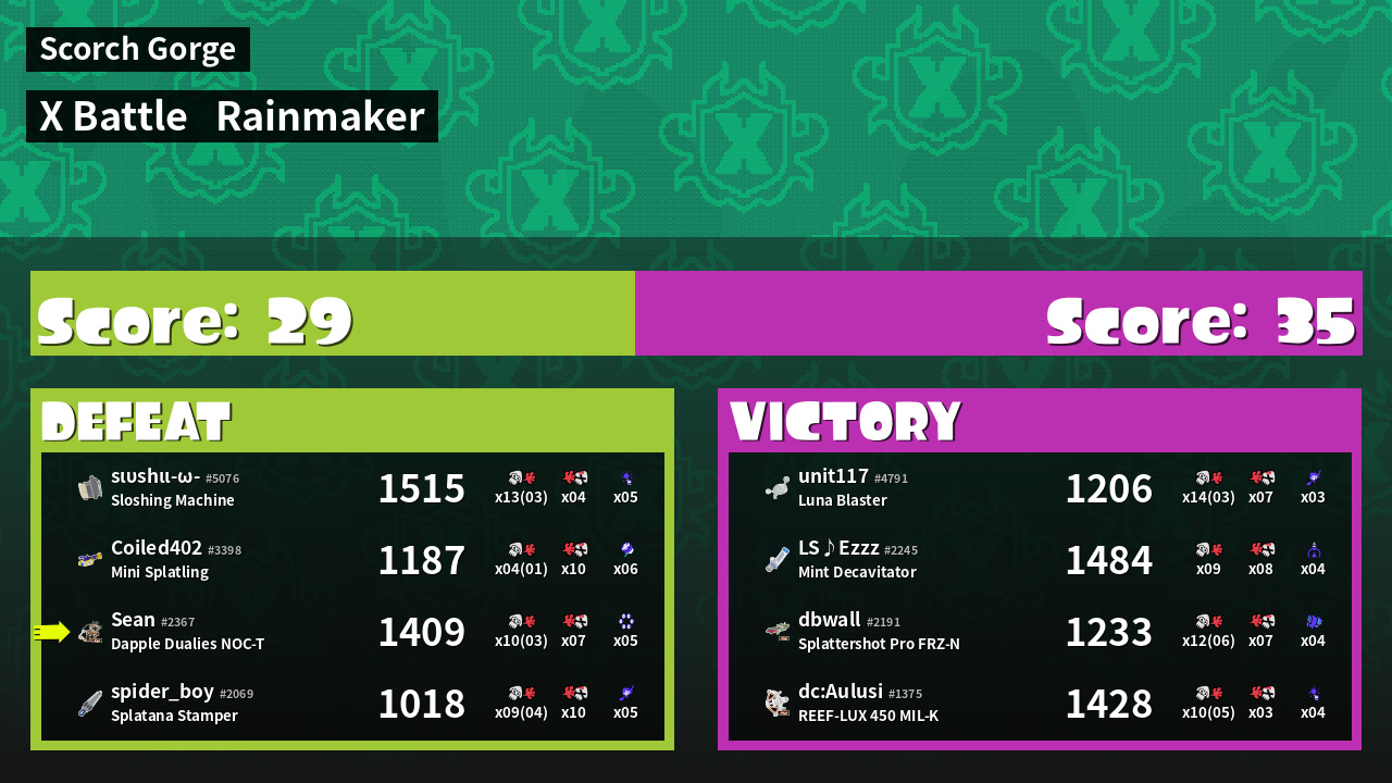 | Weapon | Dapple Dualies NOC-T ( Splat Bomb / Killer Wail 5.1) | ||