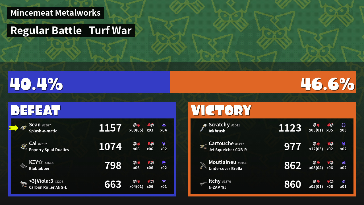 | Mode | Turf War - Regular Battle | ||