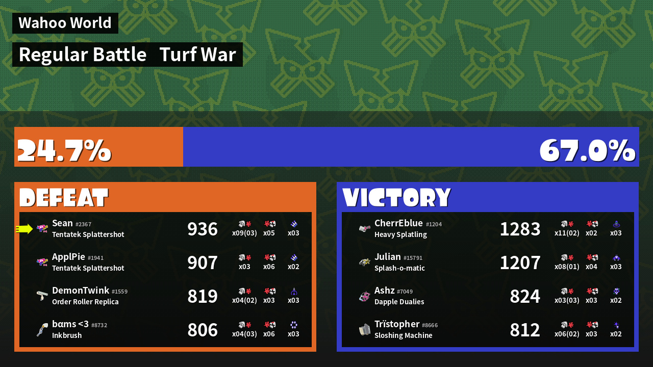 | Medals | #1 Overall Splatter #1 Turf Inker #1 Popular Target | ||
