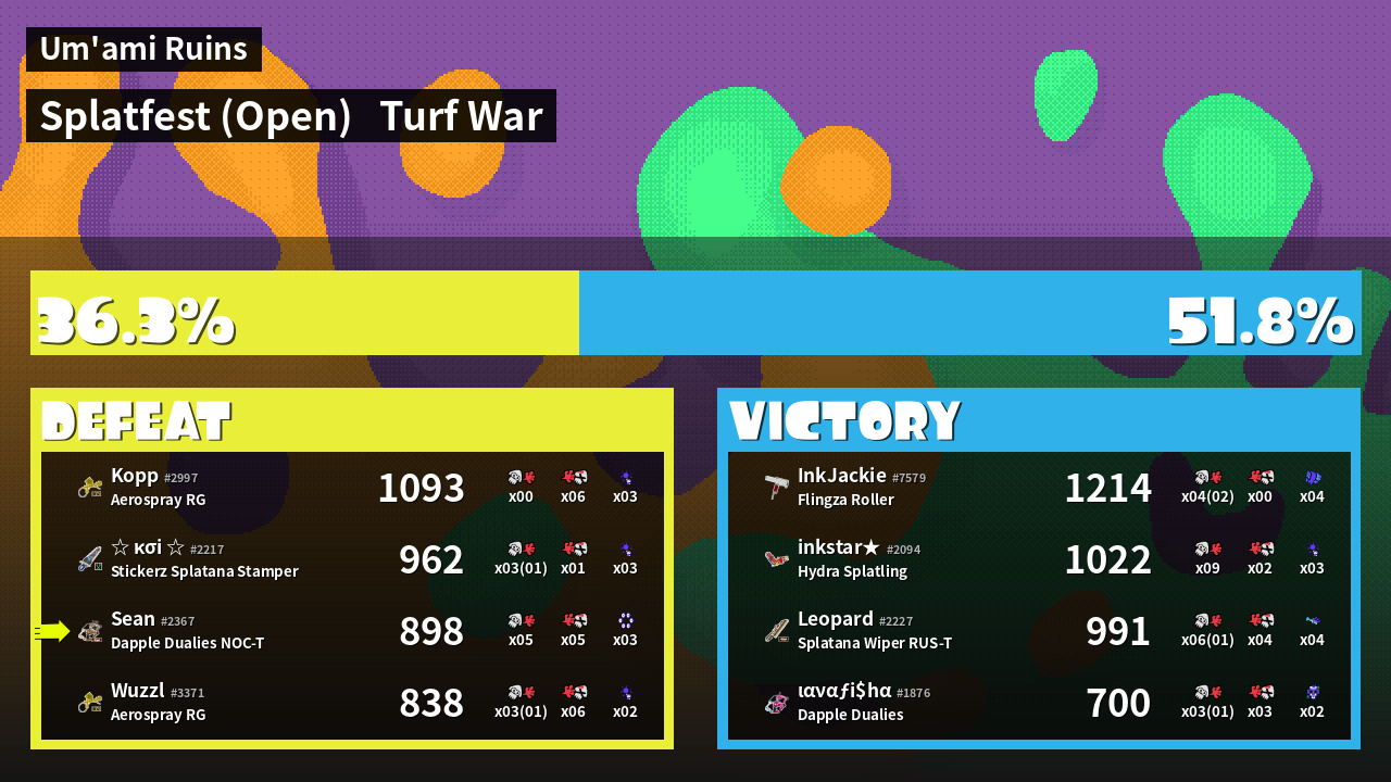 | Mode | Turf War - Splatfest (Open) | ||