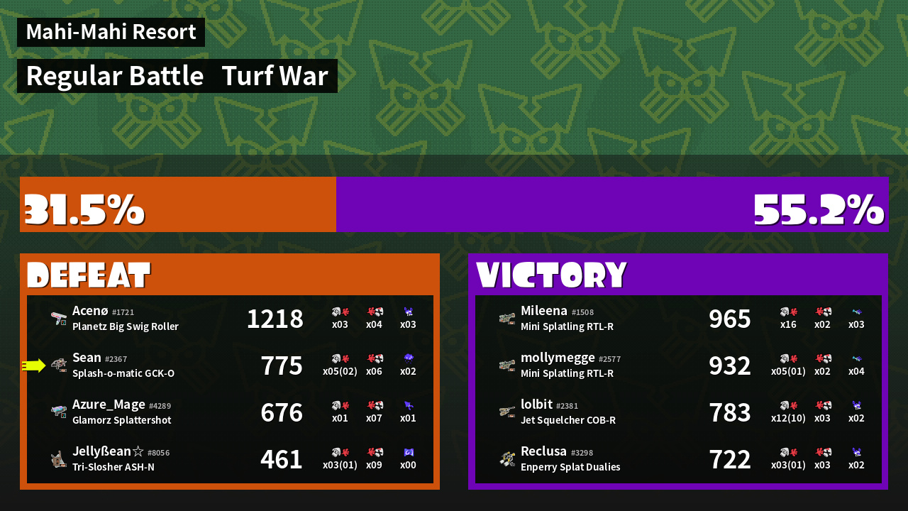 | Mode | Turf War - Regular Battle | ||