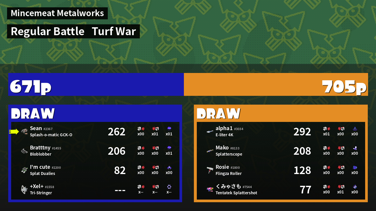 | Mode | Turf War - Regular Battle | ||