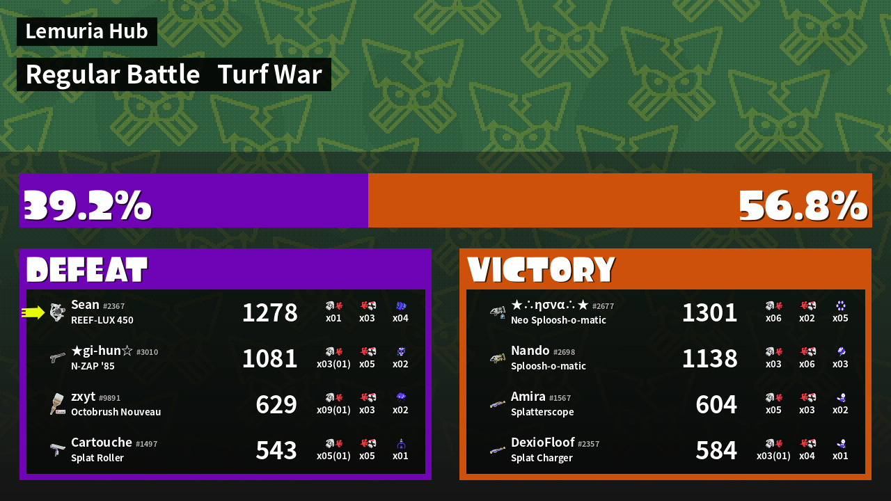 | Mode | Turf War - Regular Battle | ||
