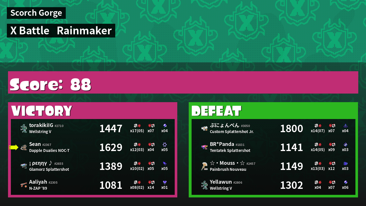 | Weapon | Dapple Dualies NOC-T ( Splat Bomb / Killer Wail 5.1) | ||