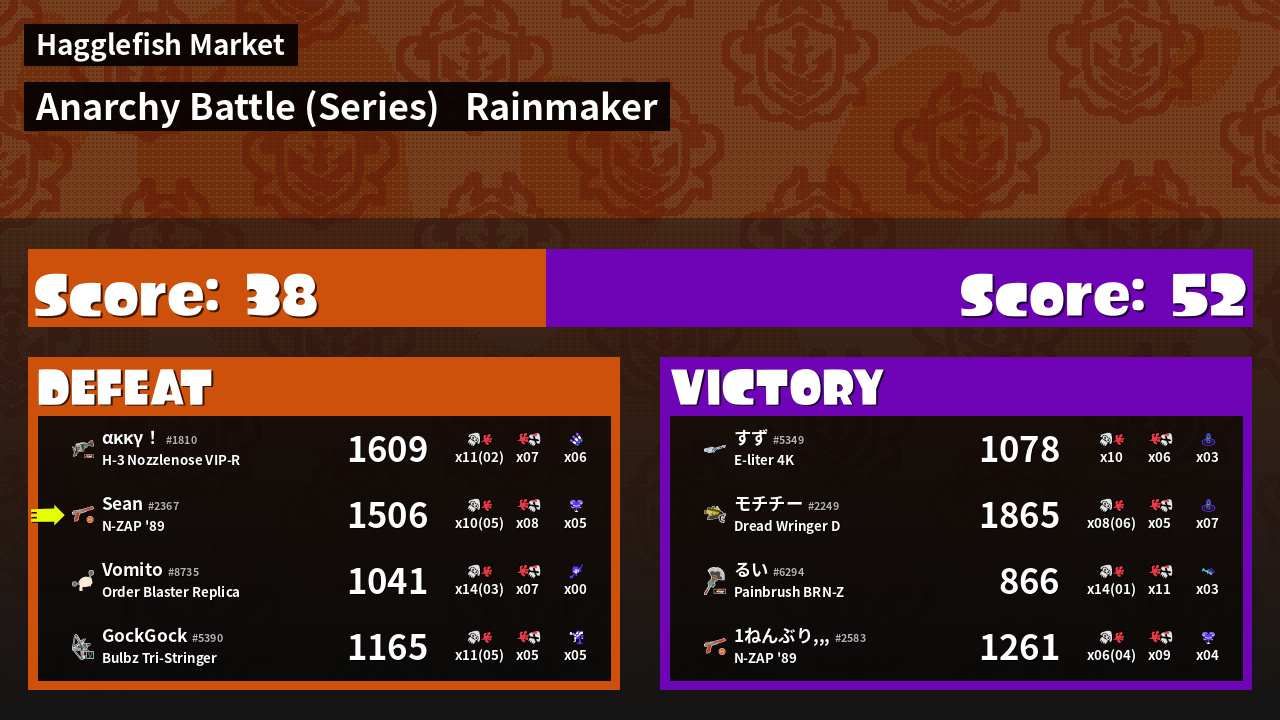 | Mode | Rainmaker - Anarchy Battle (Series) | ||