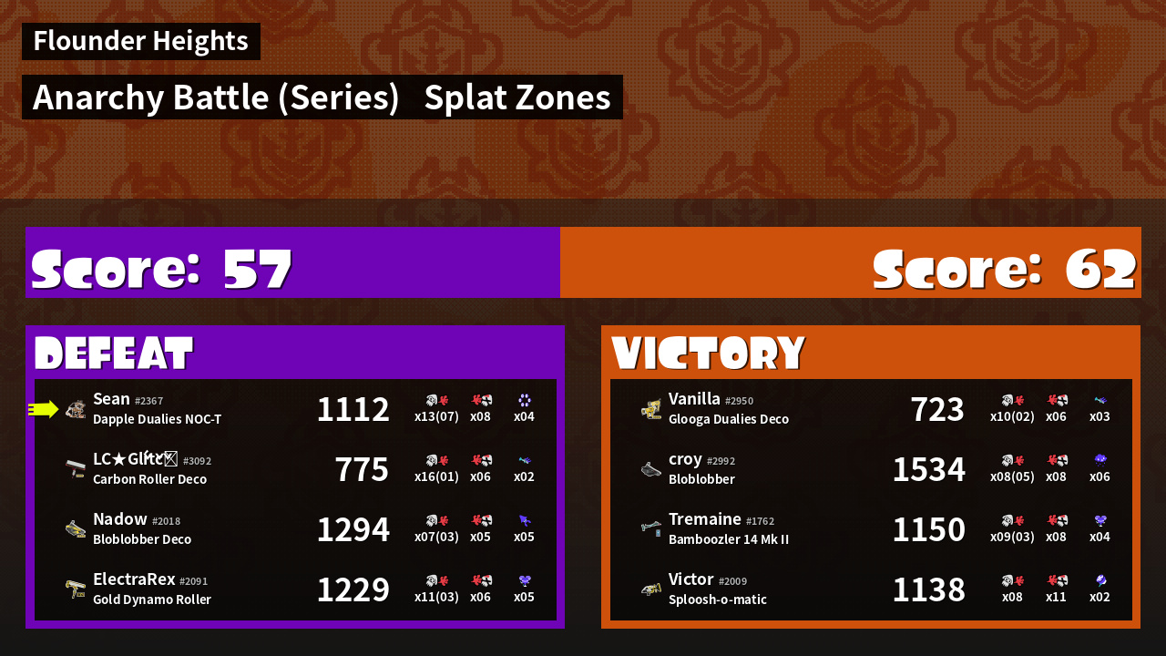 | Mode | Splat Zones - Anarchy Battle (Series) | ||