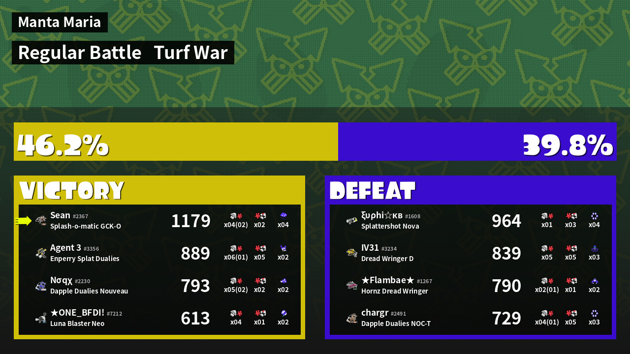 | Mode | Turf War - Regular Battle | ||