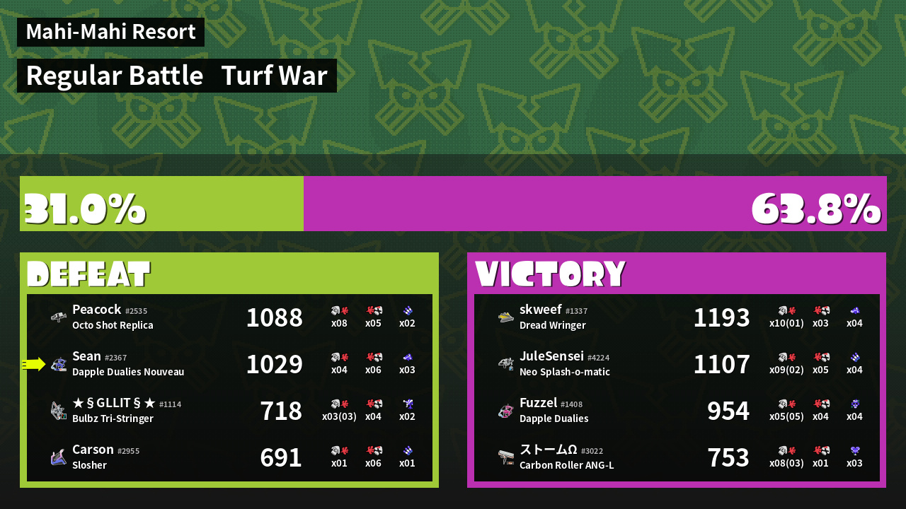 | Mode | Turf War - Regular Battle | ||