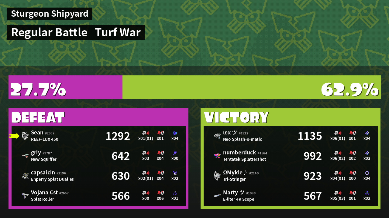 | Mode | Turf War - Regular Battle | ||
