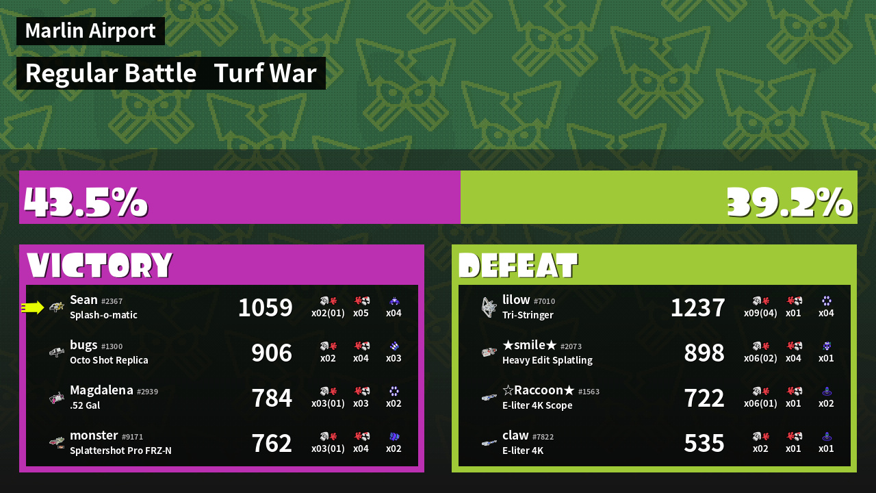 | Medals | #1 Turf Inker #1 Enemy-Base Inker #1 Splat Assister | ||