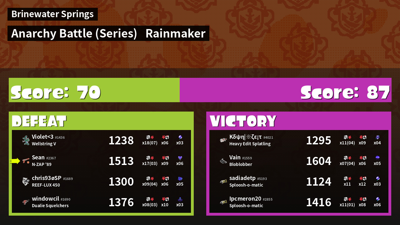 | Medals | #1 Turf Inker #1 Popular Target #1 Enemy Splatter | ||