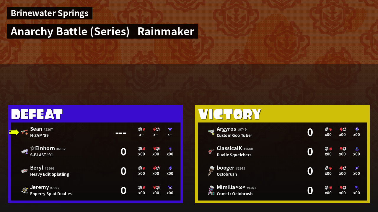 | Mode | Rainmaker - Anarchy Battle (Series) | ||