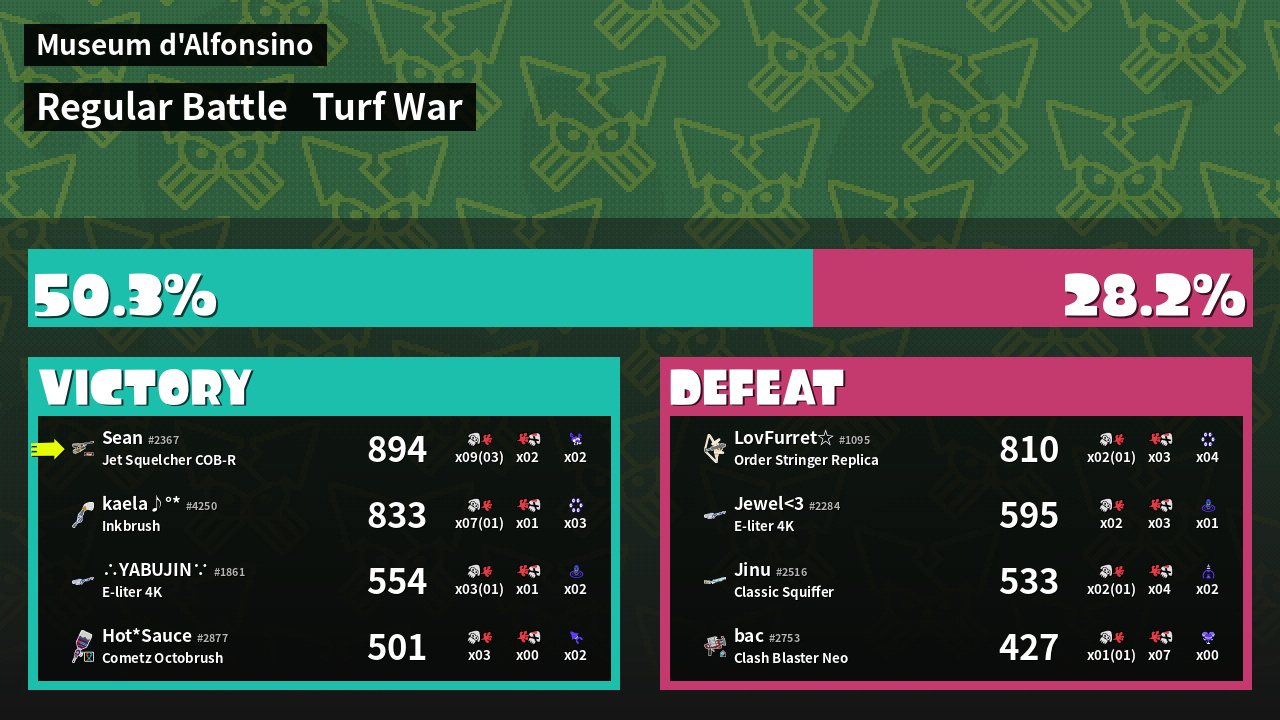 | Medals | #1 Overall Splatter #1 Turf Inker #1 Enemy Splatter | ||