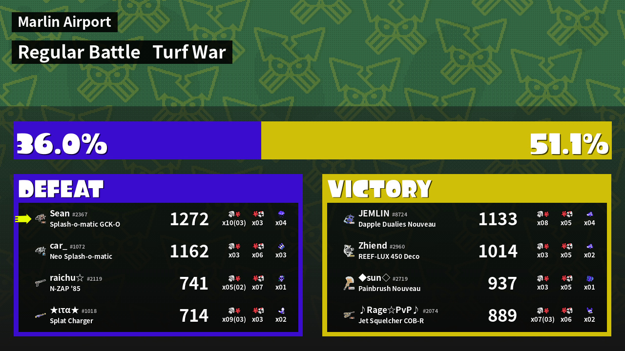 | Mode | Turf War - Regular Battle | ||