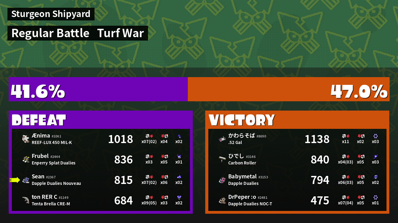 | Mode | Turf War - Regular Battle | ||
