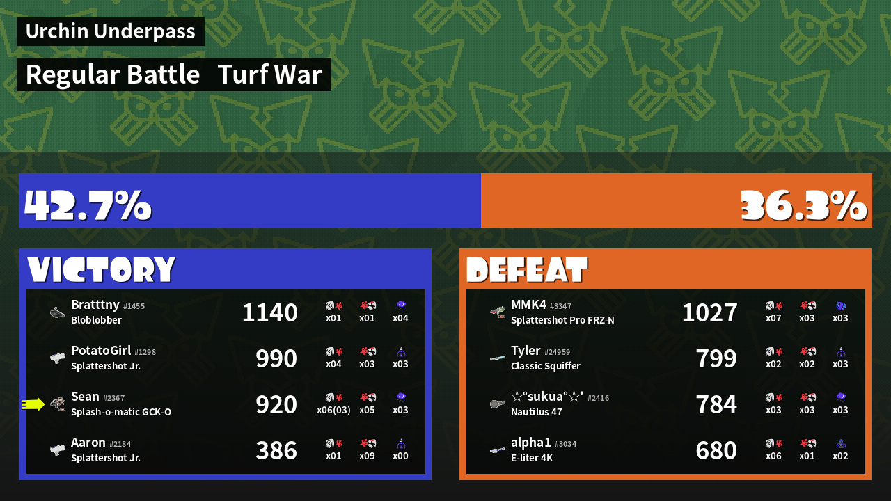 | Mode | Turf War - Regular Battle | ||