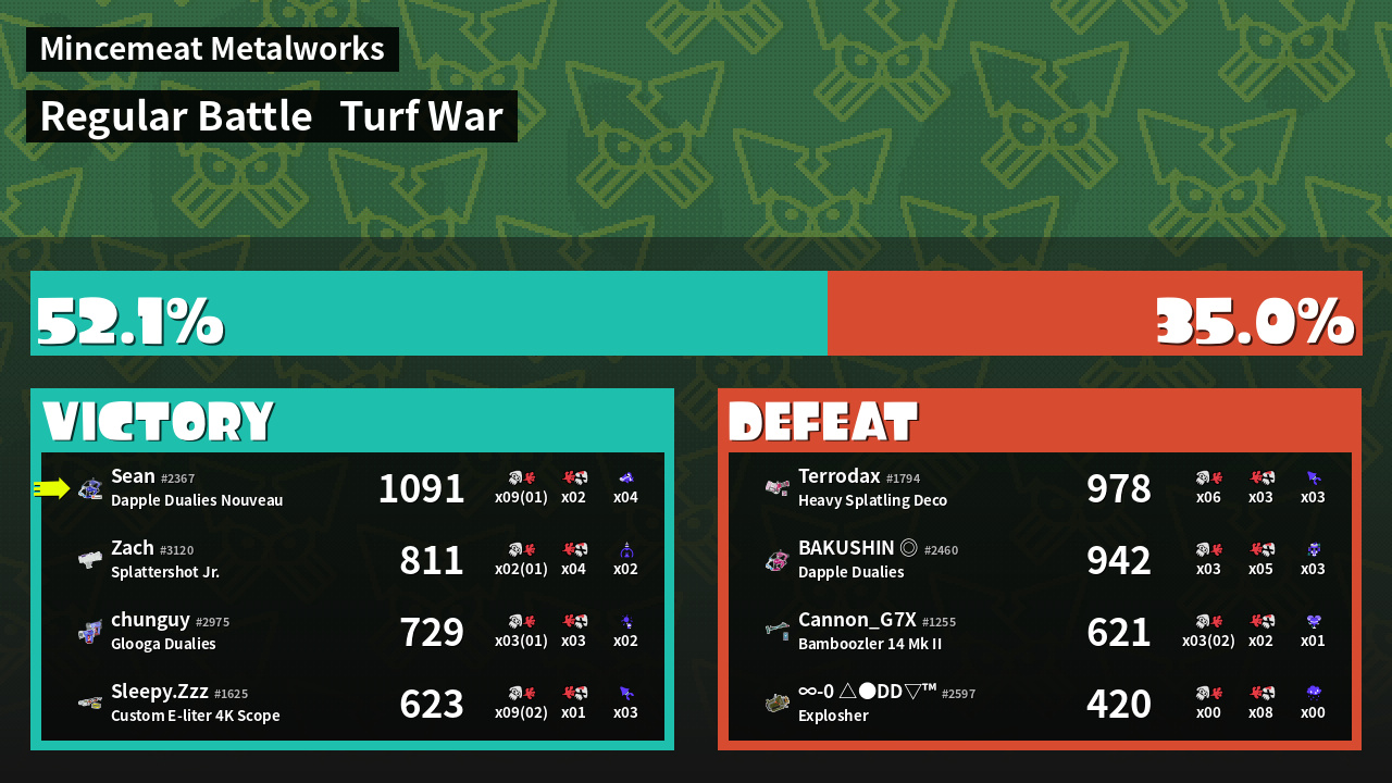 Kills / Deaths | 8 + 1 / 2 > Kill Ratio: 4.00 | ||