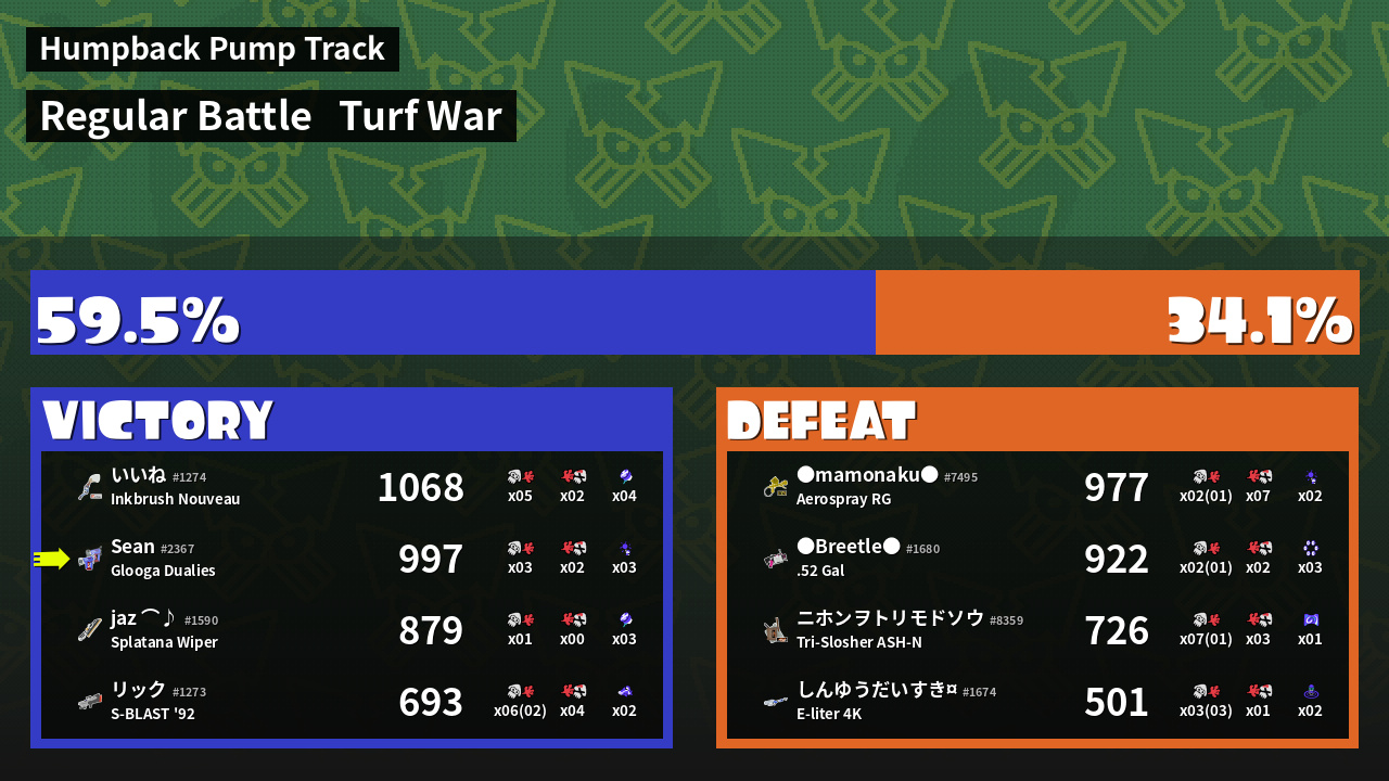 | Mode | Turf War - Regular Battle | ||