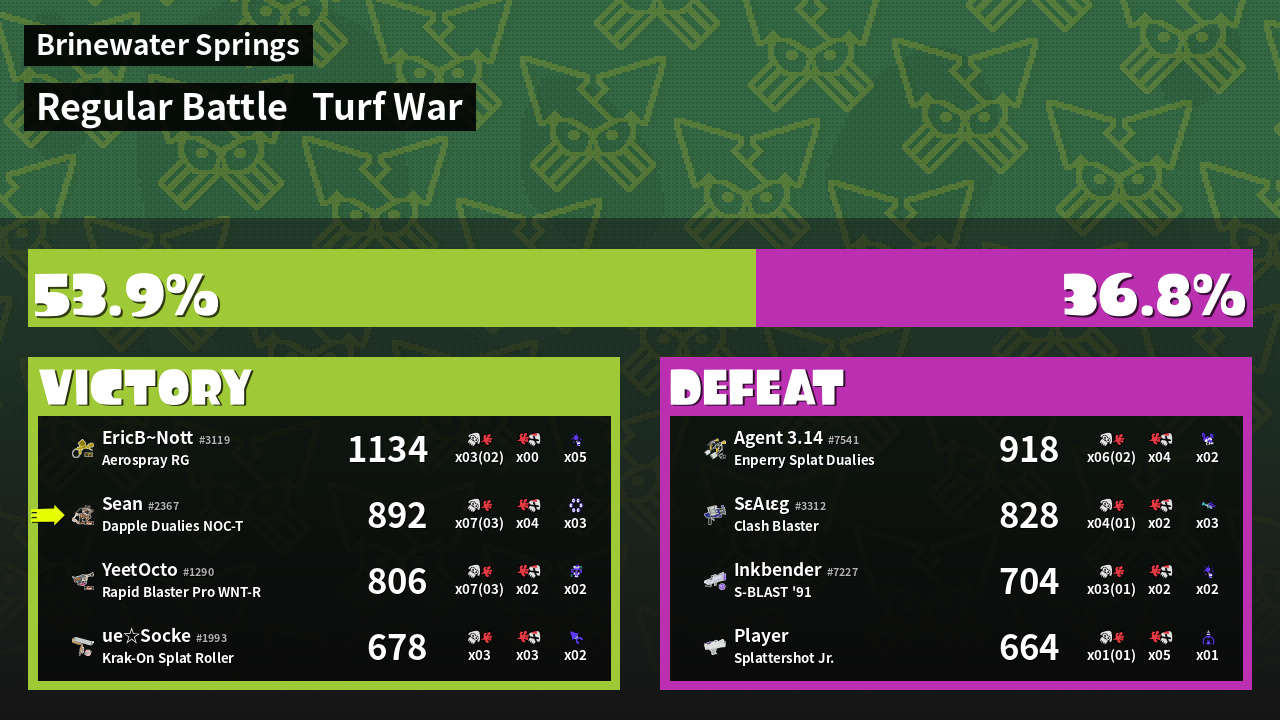 | Medals | #1 Overall Splatter #1 Enemy Splatter #1 Splat Assister | ||