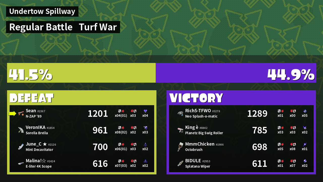 | Mode | Turf War - Regular Battle | ||