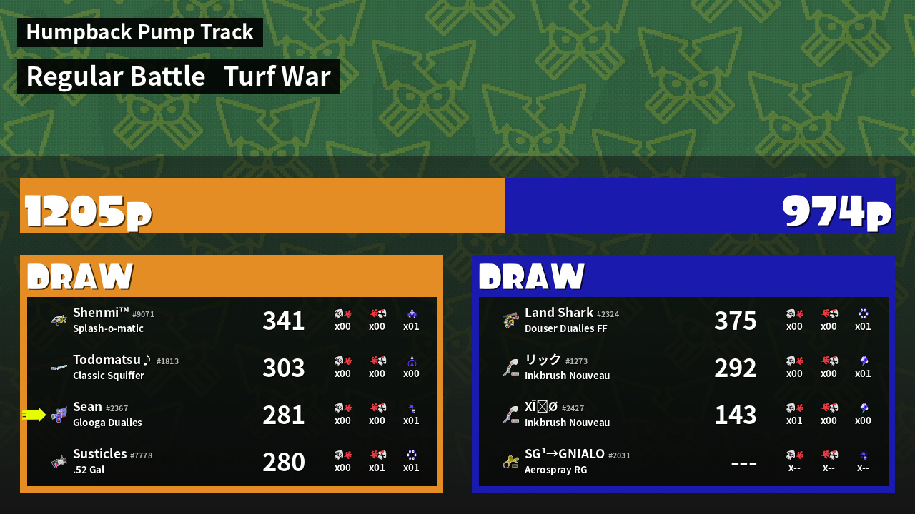 | Mode | Turf War - Regular Battle | ||