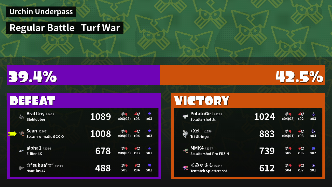 | Mode | Turf War - Regular Battle | ||