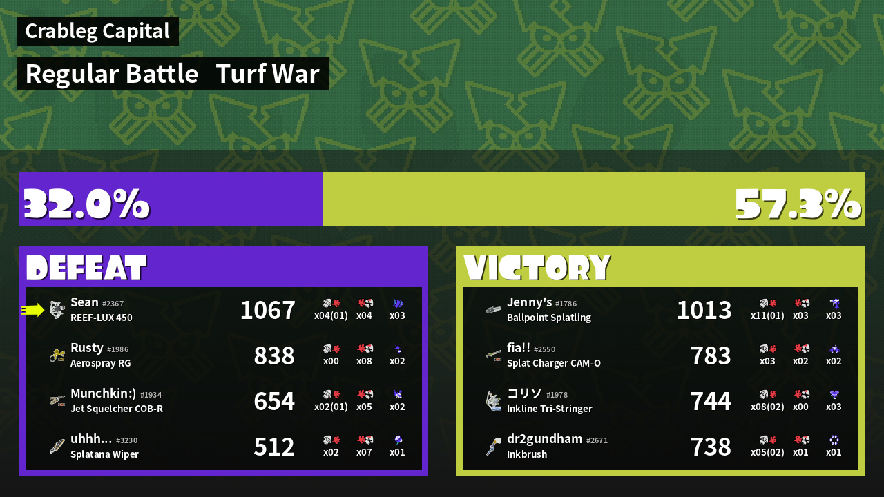 | Mode | Turf War - Regular Battle | ||