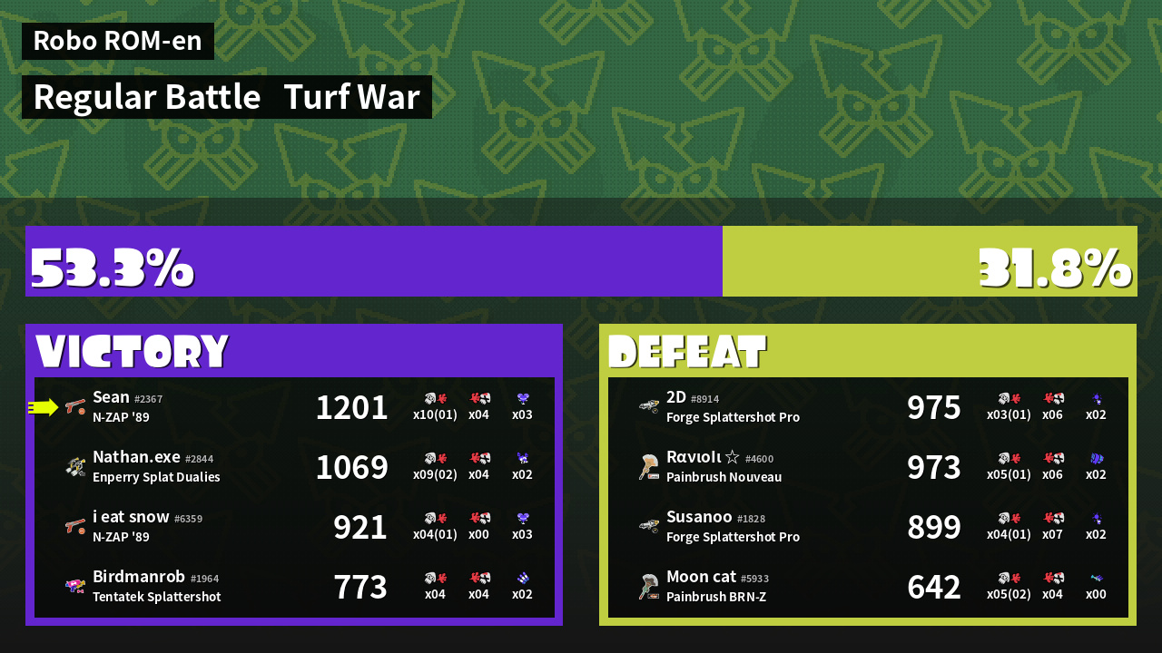 | Medals | #1 Overall Splatter #1 Turf Inker #1 Enemy Splatter | ||