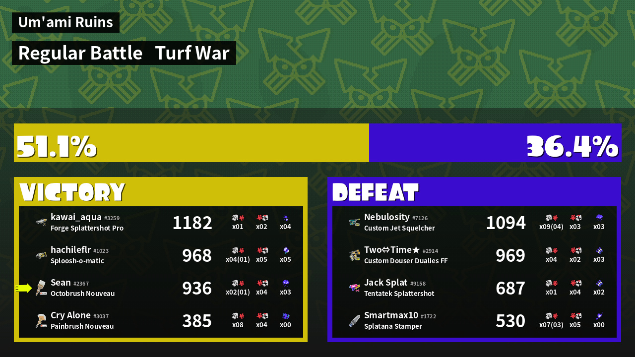 | Mode | Turf War - Regular Battle | ||