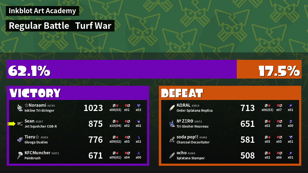 | Medals | #1 Overall Splatter #1 Splat Assister #1 Ink Consumer | ||