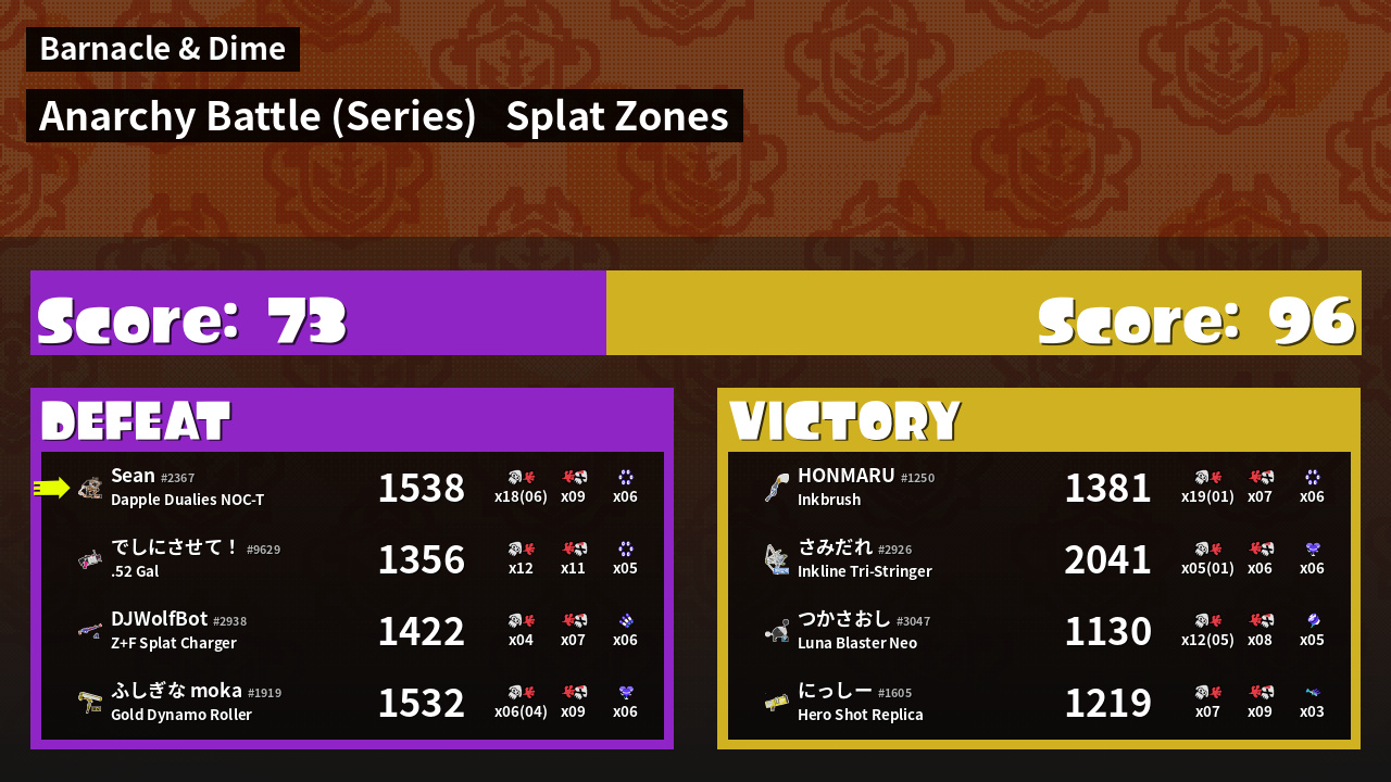| Mode | Splat Zones - Anarchy Battle (Series) | ||
