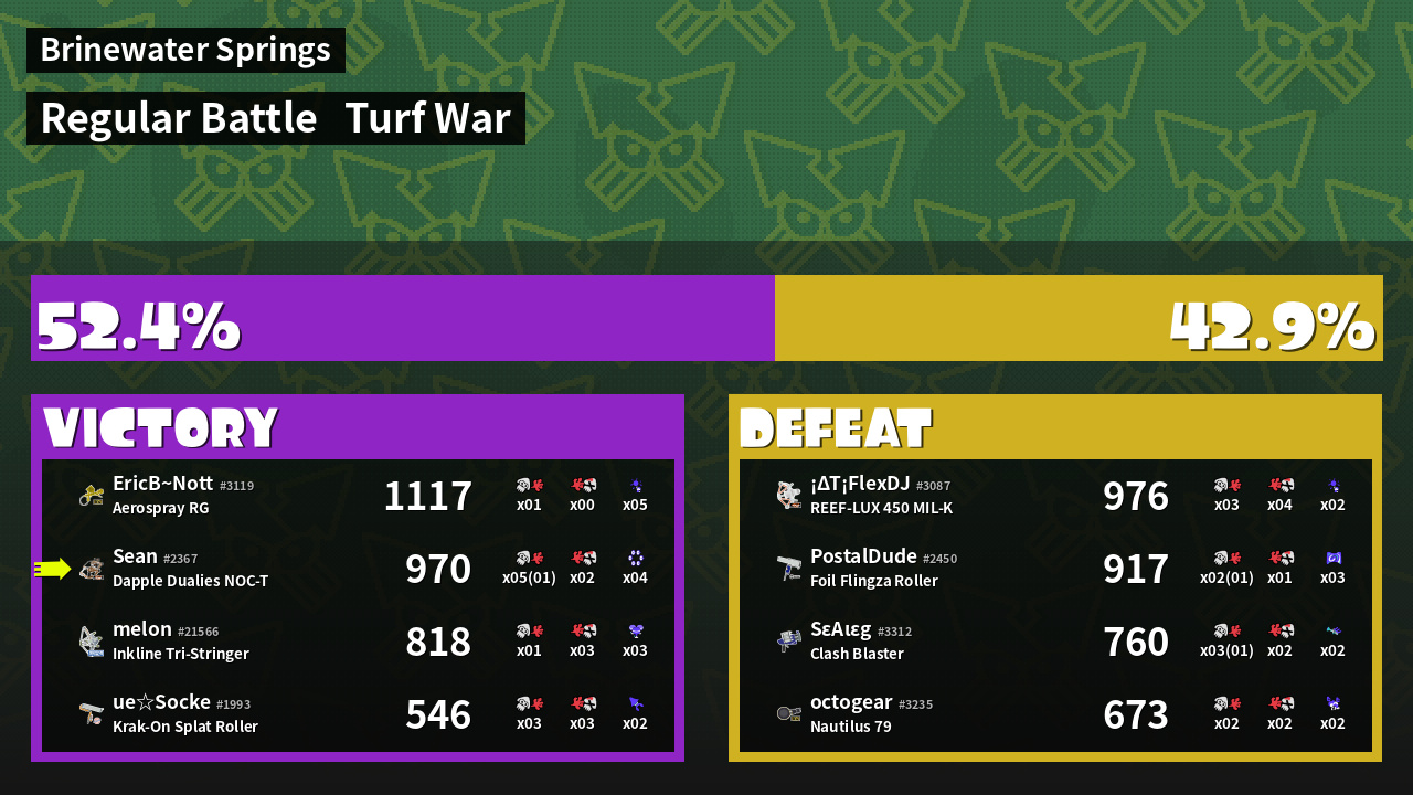 | Mode | Turf War - Regular Battle | ||